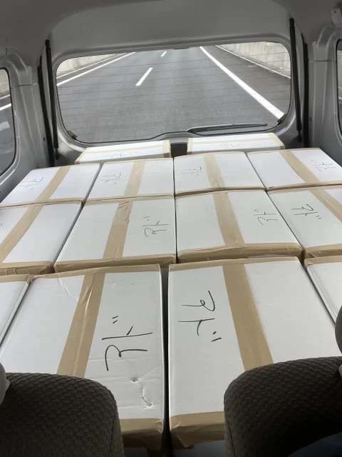 新鮮な車海老を海外向けに配送のため本島北部に位置する屋我地島から那覇空港まで今日初めての配送です これから週4回の配送になります、エビちゃんたちがびっくりしない様に優しく運びたいと思います