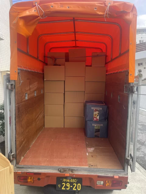 沖縄HIKO軽急便の引っ越し作業3人で進めました 1回で荷物が乗らず往復作業になりました 2回でも安いので喜んでもらいました、 沖縄県本島内の引っ越しは我が社にお任せください